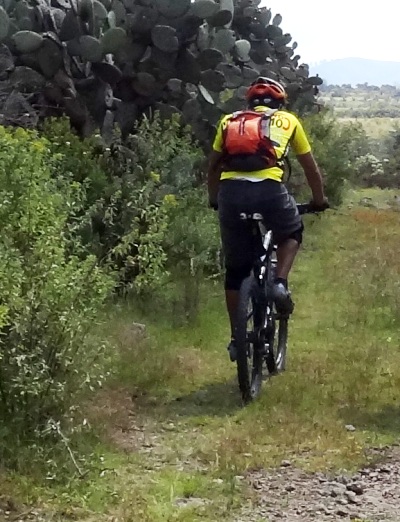 Ciclista entre nopales, Oxtotipac Méx